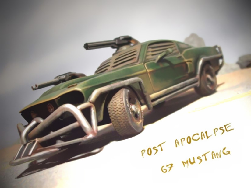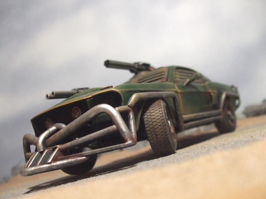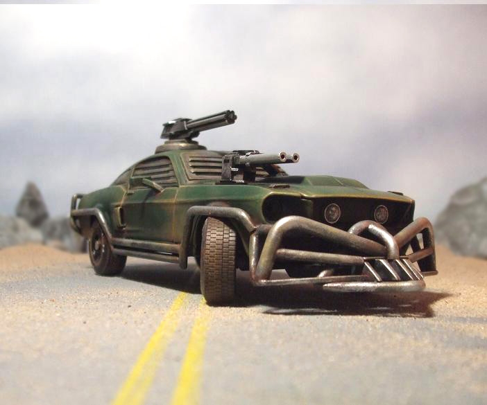 gattling gun mounted on the roof are scratch Built from styrene strips and tube. I decided to paint the 'Stang green to