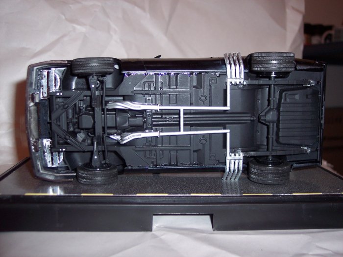 Jacob Cummings took the Aoshima Interceptor and modified it to appear as it did in Mad Max. There is a conversion kit made for the Aoshima model that includes the trunk (boot) lid, extra front seat, rear spoiler, package tray, and the front lower nose piece. It really turned out quite well. Since this model wasn't made "out of the box", I put it in the customs section.