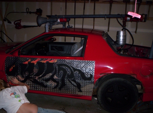 vehicle's name itself. I wanted some kind of flaming artwork for the sides and/or hood; to go along with the flamethrower