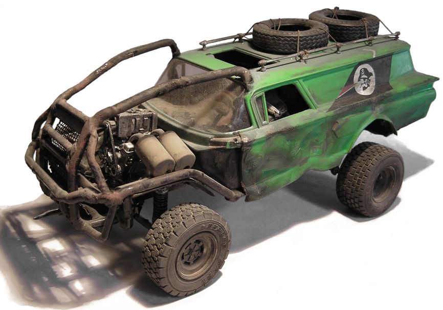 from a 1/20 dune buggy model) Inside are lot of tools, firearms, and a seat. Three warriors could fit in the car.